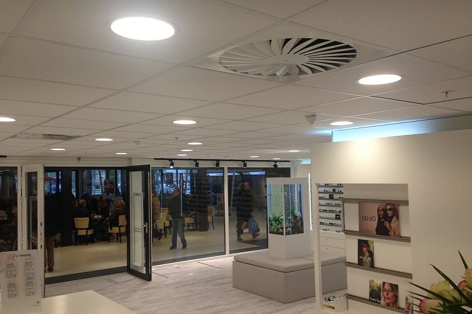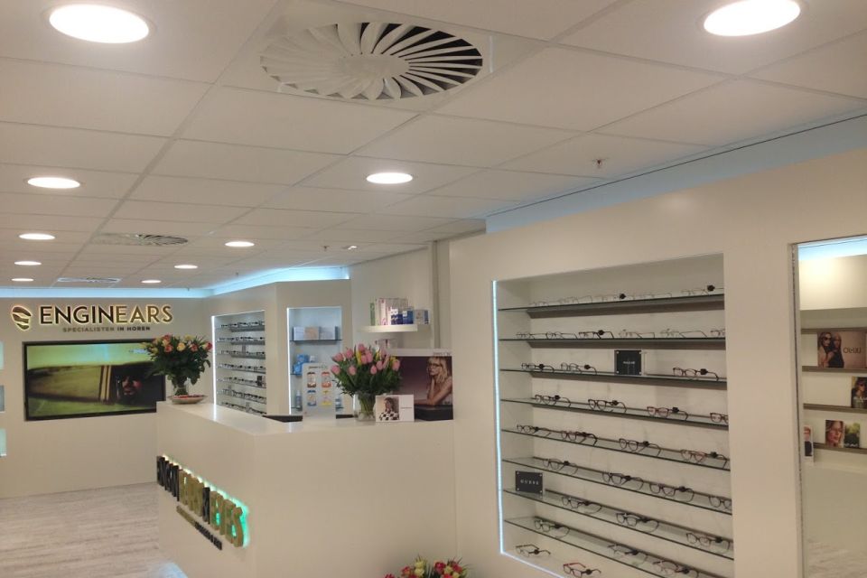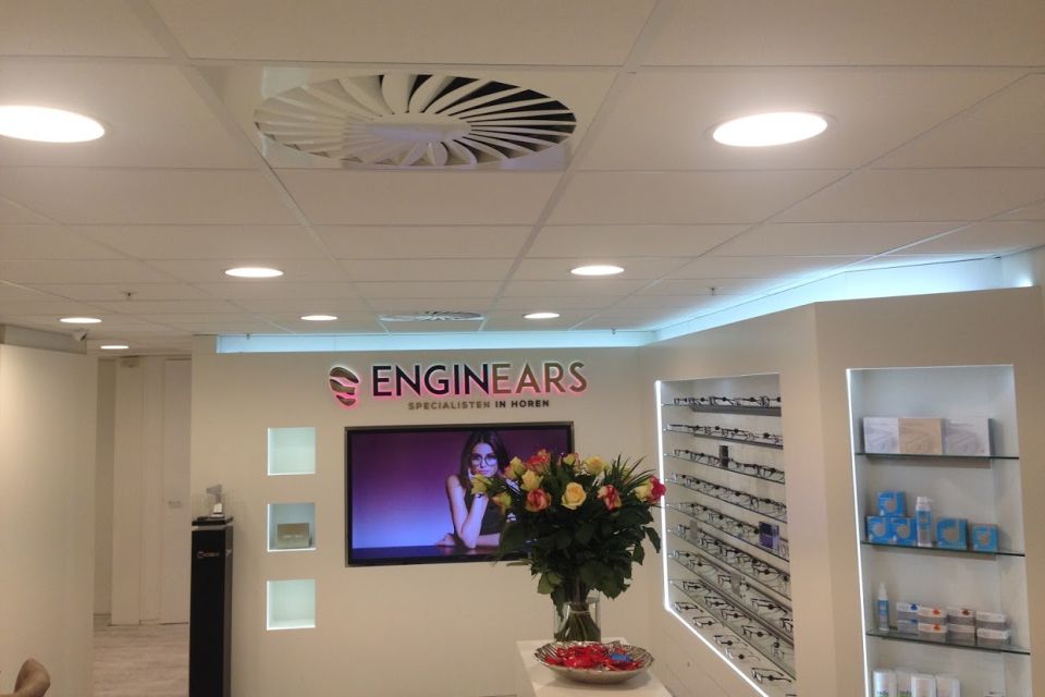 Doordat er met dit klimaatsysteem zowel gekoeld als verwarmd kan worden, zijn de medewerkers en klanten van EnginEars verzekerd van een heerlijk binnenklimaat, het hele jaar door! Bovendien zijn alleen de luchttoevoerroosters zichtbaar vanuit de winkel, omdat de kanaal unit weggewerkt is in het systeemplafond.